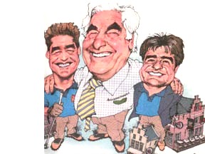 John, Bill en Geoffrey Groenewoud Jim en Jeanine ontbreken er op. © Cartoon van Paul van der Steen. | ![]() |