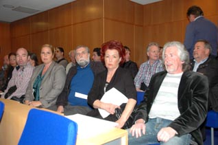| De publieke tribune was voornamelijk gevuld met families van het woonwagenkampje aan de Deutersestraat. Op de linker foto middenin de belangenbehartiger van de bewoners Tom de Booij. | foto's © paul kriele, 17 apri 2014. |