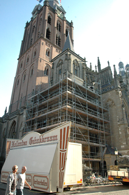 Na de restauratie van de toren van de doopkapel in 2013, gaat de restauratie aan de Noordzijde verder met de aanpak van het Noordertransept en de Mariakapel. foto © paul kriele, 6 augustus 2013. |