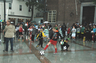 De clinic bestond uit een yel en een wedstrijd balletje hoog houden. Elk van hen mocht een voetbal mee naar huis nemen. foto's © paul kriele, 28 mei 2014. |