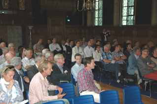 | De met 150 bij de Groene Vesting betrokkenen in de voormalige Statenzaal op 30 juni 2014 tijdens de [vlg Rob de Vrind] implantatie van de Linie van 1629. | foto's © paul kriele, 30 juni 2014. |