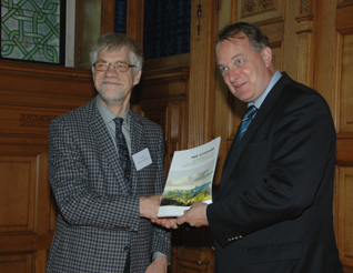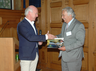 Hierboven: Hoofd van de BAM Hans Meester biedt aan wethouder Huib van Olden 'Het Linieboek 1629' aan. foto's © paul kriele, 30 juni 2014. |