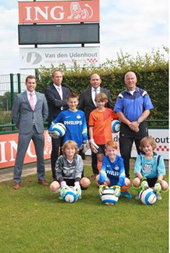 Wethouder Huib van Olden en het bestuur van voetbalvereniging Emplina aan 't sap |