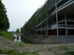 | -Boven: Op het voorplein van het ziekenhuis staat al een parkeergarage voor bezoekers. -Rechts boven: Aan de westzijde [Vlijmense kant] staat een garage voor personeel en dan komt er nog een extra parkeerlocatie [transferium] aan de Deutersestraat ter vervanging van het huidige transferium aan de Vlijmenseweg.De Gement waar aan de Deutersestraat, bij het volkstuinencomplex en de stadskwekerij een transferium wordd aangelegd. foto's © paul kriele, 17 maart en 16 oktober 2011 en herman van boxtel, 27 april 2011[ r-boven]. |