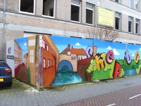 | -Hierboven: Het enige mooie in de Lange Putstraat is de grafitty op de houten bouwschutting rond de verloederde panden in die straat. Maar daar wil verder geen enkele bouwactiviteit opschieten. Ook niet na artikelen op Bastion Oranje en een brief van het College van B&W eind oktober 2008. -Rechts: Enige beweging zit er in het pand Verwersstraat 78. Daar heeft Groenewoud op de ramen plakstroken bevestigd met erop: Showappartementen direct te aanvaarden.. met telefoonnummer. -Rechts boven: Ook de bouwacitiviteiten op Parade 12 liggen vanaf oktober 2008 stil. Het hoekpand was oorspronkelijk van Geoffrey Groenewoud, maar werd aan Rens den Otter verkocht. Den Otter, die er een Bed & Breakfasthotel wilde inrichten, haakte in oktober 2008 met die plannen af. foto's © paul kriele, 3 april 2007 [r-boven], 24 februari 2008 [l-boven] en 13 januari 2009. | ![]() |
