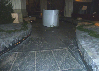 Op 4 december 2014 werd begonnen met het weghalen van de steigres rond de luidpoort. Die keren wel weer terug, maar dan in het voorjaar om de rest vande Noordzijden van de kathedraal aan te kunnen pakken. Het lijkt er ook een beetje op of het kerkbestuur schoon schip heeft willen maken met de ingang ivm het jaarlijkse Kerstconcert. foto © paul kriele, 4 december 2014. |