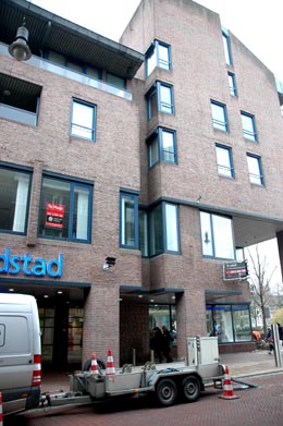 | Op de eerste etage van wat vroeger ABN/AMRO was, komt ook een fitnessruimte. Het zijn de vrijgekomen kantoren van de voormalige Duitse Bank. |
