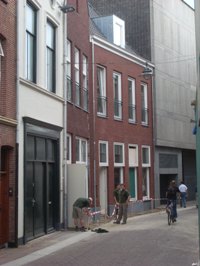 Het casco van de nieuwbouw aan de zijde Doode Nieuwstraat van het perceel Markt 16 is net voor de bouwvakvakantie 2009 nagenoeg klaar. Daar staat nu een stijlvol pand met bestemming winkel/bedrijfsruimte op de b.g.g. en twee appartementen op de etage. Eigenaresse Onroerend goedbelegger Rovast is de opdrachtgever voor deze bouw die gerealiseerd werd door BRP. foto © paul kriele, 28 juli 2009. |