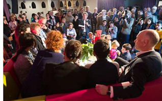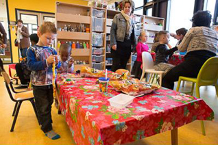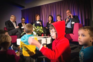 -Links: De talkshow voor jong en oud. -Boven: De jeugd vermaakt zich in een voor hen ingerichte 'speelkamer'. foto's © bart oosterveld, 13 maart 2015. |