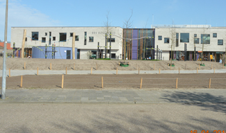 De nieuwe aanblik van de nieuwe BBS Boschveld met een speels voorplein. foto © paul kriele, 16 april 2015. |