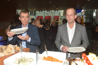 De opening van de avond in het Bestuurscentrum door Peter Middendorp door als eerste van het buffet van Hutten gebruik te maken. Rechts schrijver Peter Middendorp en links André Stikkers. |