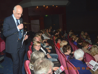 Radiocoryfee Frits Spits begon zijn presentatie met wat quizvragen over literatuur, die hij aan het publiek stelde. foto © paul kriele, 13 maart 2015. |
