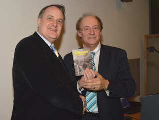 ![]() | Wethouder Huib van Olden ontvagt van Rob van de Laar van het Stadsarchief het eerste exemplaar van 's-Bosch. foto © paul kriele, 16 maart 2015. |