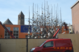 Voor de afbraak van het 15 meter hoog en 7 x 7 meter brede kunstwerk dat op 72 stalen staanders 300 keramische objecten bevat, duurt nog t/m 18 april 2015. Nog voor de zomer moet het in Oisterwijk weer zijn opgebouwd.