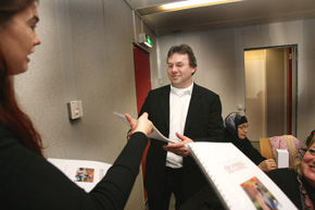 | Boven: Enkele gerechten werden ook ter plekke bereid. Rechts: overhandiging van het 1e exemplaar aan Henk Roozendaal en Mirjam Lamme van Brabant Wonen. foto's © marc venrooij, 27 januari 2009. |