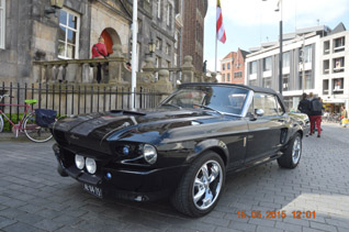 | -Boven: Een Ford Mustang XXL als bruidswagen. -Rechts boven: Het echtpaar Niels en Samantha van Kan uit Rosmalen dat rond half elf huwde. -Rechts: Bruidspaar Van de Wildenberg dat rond 12.30 uur in de echt werd verbonden. foto's © paul kriele, 15 mei 2015. |