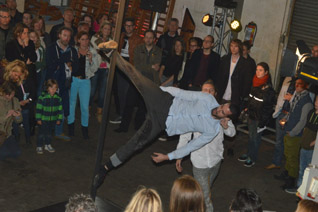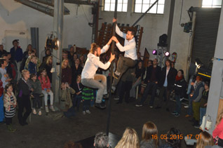 Maar zo ver is het nog niet al ging het ceremonieel gedeelte over in het ‘Rauwe Ruimte feest, dat startte met een spectaculair optreden van twee trapeze mannen, een culinair deel door Hapaz en het muzikale deel door dj-LOSjes.