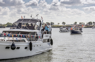 Op elke boot varen begeleiders en eerste hulpkrachten mee. Damesorkest Niks Nep zorgt onderweg voor de vrolijke noot. Ook het snelle bootje van de reddingsbrigade is present. Dat cirkelt om de vloot heen. En zal dat de gehele dag blijven doen.