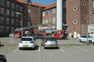 De brandweer rukte woensdag 1 juli 2015 om kort voor 4 uur uit richting KPN in de Prins Bernhardstraat. Daar ging de ladderwagen uit naar de expeditietoren op de binnenplaats aan de zijde Weversplaats.