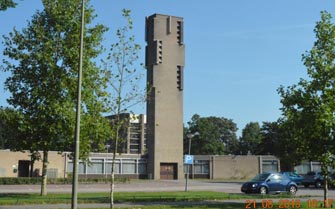 De Wederkomstkerk met de markante toren aan de Rijnstraat, krijgt na sluiting een andere -nog onbekende - functie. foto © paul kriele, 21 augustus 2015. |