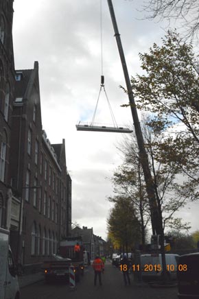 | Het element ligt - voorlopig -op zijn plek. | De liggers zijn allen al aangebracht. foto's © paul kriele, 18 november 2015. |