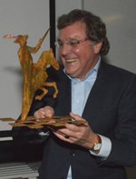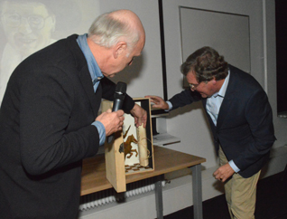 ![]() Voorzitter van de stichting de Groene Vesting gaf Jan van Roekel bij zijn afscheid [sabatical jaar] een munitiekistje cadeau. Daarin zat een ruiter uit het leger van Frederik Hendrik en ook een oorkonde waarop zijn verdiensten staan vermeld. foto © paul kriele, 23 november 2015. |