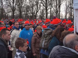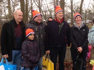 | vlnr.: Ton Hendriks en Jens en Peter Elemans en Meina en vooraan Meina's dochter. | Dit jaar bij de Oosterplas, bij de negende editie een grote toeloop foto's © ellen elemans, 1 januari 2016. |