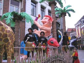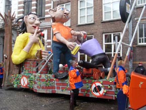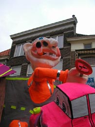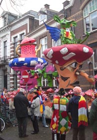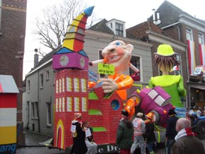 | CV De Draokebollen geven de toeschouwers, omdat er overal zoveel verandert, een geheugensteuntje..Ontwerp van de praalwagen van de Draokebolle Egbert ter Heine. foto's © willy kersten [l-boven] en paul kriele, 23 februari 2009. | ![]() |