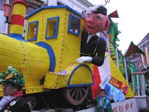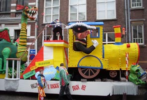![]() | CV Pereplukkers Knillis stikt er vandaag ook de draok mee. Ontwerp: Martijn Broeren. foto Ontwerp Marinka Scheepens Natasja Klomp. Bijv. met de aankomst van de Prins met de trein en daarna loopt het gruwelijk uit de klauwen.. foto's © willy kersten [boven] en paul kriele, 23 februari 2009. |