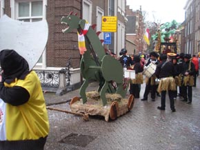 | De Pintvatters met een middeleeuws Drakensteekspel dat als motto heeft: Draoge Draoke Steke? foto's © paul kriele, 23 februari 2009. | ![]() |