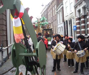 | CV 'Ha'k maor wè' met de Oeteldonkse renstal: De Stokdraakskes. Eigen ontwerp. Rechts: Een kleine snel lerende trommelaar. foto's © paul kriele, 23 februari 2009. | ![]() |