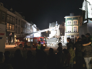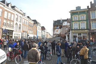 Puinruimen uitgesteld ivm gevaar voor omwonenden en winkeliers. Zie onder deze foto's 'ramptoerisme'.
