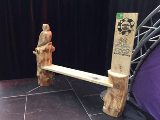 Bank die Staatsbosbeheer op de Boomfeestdag aanbiedt aan de Gemeente Den Bobch voor het Kanaalpark. |
