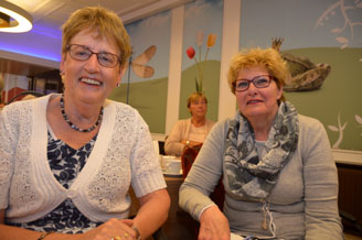 Het oud bestuur van het KVG afdeling Den Bosch, links voorzitter Toos Lukassen en rechts secretaresse Elly van der Stoop. foto © paul kriele, 24 mei 2016. |