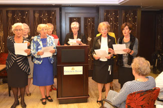 Na de aankondiging van de viering van het 70-jarig bestaan op 23 mei 2017 in Hotel Central, werd onderleiding van Thea van Kemenade-Vriens een loflied op Toos en Elly gezongen.