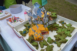 | De koekjes die ter proeverij rond gingen en gekeurd werden door wethouder Logister, kunstenaar Kees van den Boogaart, Brabant Wonendirecteur Buursink, maar ook door de oude bekende Lisette van Rooij, van het kruidenierswinkeltje, meergenaamd de WIP-in [rijksweg]. foto's © paul kriele, 2 juli 2016. |