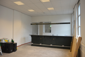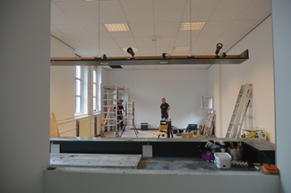 | Pand Torenstraat 8 met De Stallen, gelegen naast het Café De Smidse op nr. 10 In deze voormalige fraterschool zit naast De Kikvorschen de scouting van de St Jan. Rechts de bovenzaal. foto's © paul kriele, 25 juli 2016 |