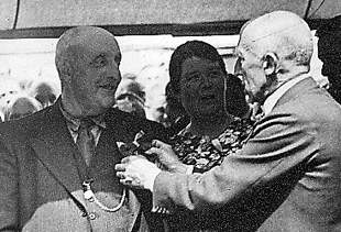 | In 1941 werd aan Adriaan van Vught door burgemeester Van Lanschot de eremedaille van 's-Hertogenbosch opgespeld b.g.v. Kees' vijftigjarig marktkoopmanschap. foto's © archief familie Stolzenbach |