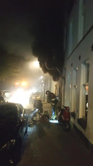 | Brand op Westwal 29-31 die in de omgeving behave voor rookoverlast ook zorgde voor een asbestregen. foto © politie en paul kriele [r.], 25 september 2016. |