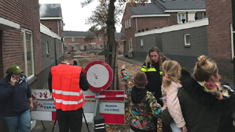 | Lariksplein -Boven: Het moment dat bewoners uit hunhuizen moesten en werden opgevangen in de De Graaf de BBS aan de Graafseweg. -Rechts: Oorlogstuig dat werd opgegraven. Het kan mogelijk afkomstig zijn van de overvliegende Engelse typhoon die in de buurt ontplofte. Jan de Wit verwijst naar een bekisting munitie en onderdeel van een licht voertuig. foto's © theo verbruggen, 7 november en jan de wit, 23 november 2016. | ![]() |