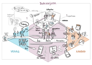 | Afbeelding bij het voorstel waarin de lijnen naar en vanaf het wijkpunt worden geschetst. Middenin het nieuw wijkpunt sociaal domein. ............................................................................................ |
