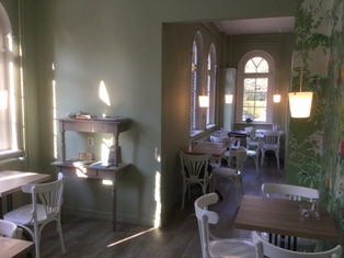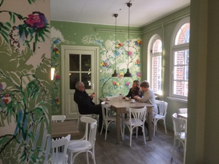 Kort en goed: er is een prachtig theehuis tot stand gekomen met mooi meubilair en een feestelijke muurschildering.