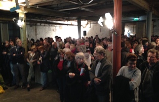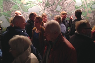| -Boven: Peter Lubbers van Buro Lubbers Landschapsarchitectuur & Stedenbouw was de spreker die zijn eerste ontwerp toelichtte. -Rechts: Het publiek in een van de ruimten van de oude Koudijsfabriek. Hier de zaal achter het Koudijscafé. -Rechts : Op deze plattegrond konden de bezoekers hun idee plakken. foto's © paul kriele, 30 januari 2017. ...................................................................................................................... | |
