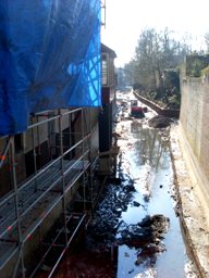 | Nog enkele weken [tot 17 april 2009, de start van het vaarseizoen] kan er nog gerestaureerd worden aan de kademuren van de Binnendieze en de rotzooi worden opgeruimd die in de Groote Stroom ligt. Dit deel vanaf het Hekelgat, via de Casinotuin en achterlangs de Papenhulst, is nu aan de beurt [geweest] . foto's © paul kriele, 3 1maart 2009. |