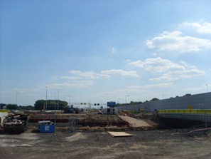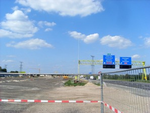 | We staan op wegniveau [daar waar de oude rondweg liep]en kijken richting Utrecht. Helemaal rechts gaat de afslag richting Rosmalen/Nijmegen. foto's © paul kriele, 4 augustus 2009. |