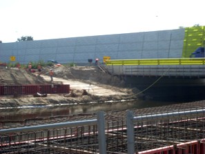 | Rondweg kruist kanaal en de N279, de kanaalweg naar Uden/Veghel.Op deze kruising komen ook nieuwe aan -en afvoerlussen. foto's © rws, juli 2009. |