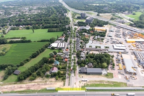 De rondweg is -op deze foto- amper onderaan de foto zichtbaar. Middenin -naar boven lopend -de Graafsebaan, rechts de Heijmanswerf. Achterin loopt de afslag van de rondweg door naar de A50 /Oss-Nijmegen. |