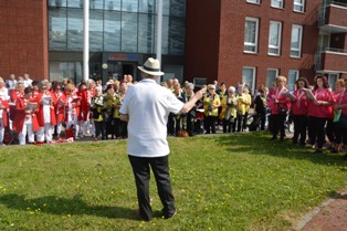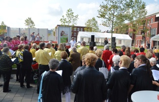 De start was bij het Buurthuis aan de Baksvelstraat, maar de hele dag waren er optredens van de vier koren die Deuteren telt: de Deuterse Mix, Amor, De Bossche Bluumkes en Zing maar lekker mee.