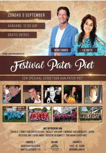 Zondag 3 september 2017wordt op twee plaatsen in Deuteren een muzikaal eerbetoon aan Pater Piet gehouden: in het Buurthuis aan de Baksveldstaat en in Café de Sjeng aan de Weidonklaan. De opening van het festival is om 12 .00 uur in het Buurthuis met een gezamenlijk optreden van de vier koren: Amor, Zing maar lekker mee, De Bossche Bluumkes en Deuterse Mix.