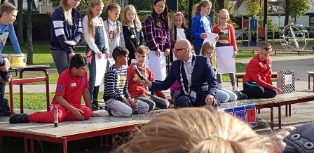 Maandagmorgen 30 oktober 2017 ontvangt burgemeester Jack Mikkers uit handen van de redactie het eerste exemplaar. De ceremonie gebeurt op het veldje bij basisschool De Bron en Merlijn aan het Zilverkruid.